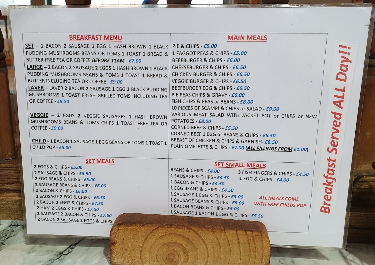 For something lighter, try their Set Small Meals, featuring favorites like Beans & Chips and 3 Fish Fingers & Chips available for just £4.50 each. The inviting atmosphere complements the experience, with reviews praising not only the quality but also the friendly service.